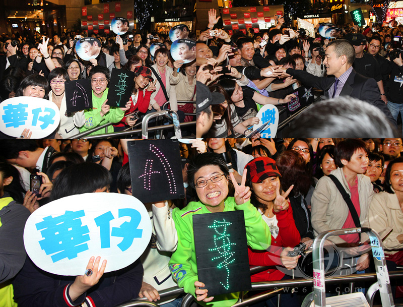 回港出席香港首映禮的路上,來送機的國內家人送上一大堆看完戲的票尾,還是