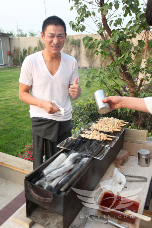 傳說老大是神,不吃人間煙火,別傻了,超錯就讓我來親自闢謠。在京拍戲期間獲邀到朋友家裡燒烤,還請來串燒師傅大顯身手,老大登時不敵魔鬼誘惑,對了,照片所見老大以外的那雙巧手,就是屬當天的串燒大廚,誘惑老大的魔鬼!<O:p</O:p