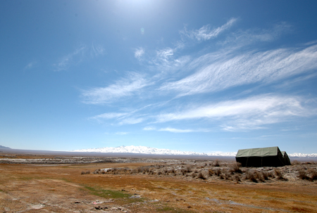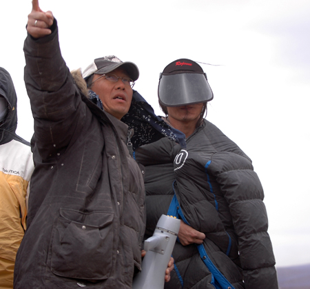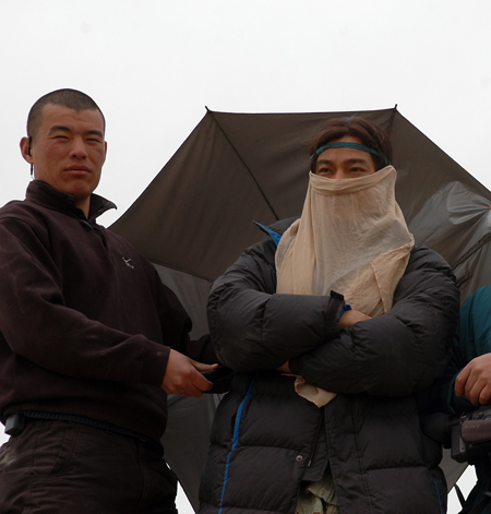 每當風沙狂吹亂舞時,拍攝便要停止,我只好九秒九躲回羽絨之中