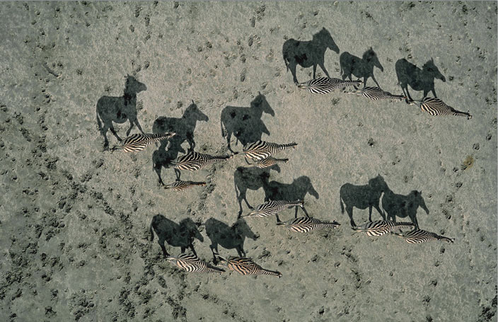 斑馬有閃亮的外衣,可以消散七成的熱氣。黑白斑紋可形成自我保護的偽裝,並混淆身體的輪廓。雖然斑紋在白天清晰可見,在晨昏時分,當掠食者最活躍的時候,身上的斑紋可以混淆斑馬實際的距離。
